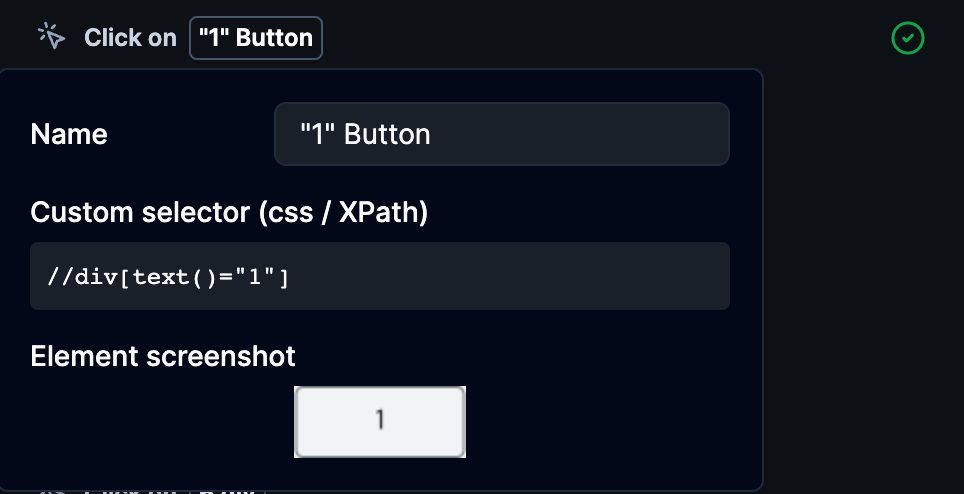 You can specify elements using CSS Selectors or XPath Selectors. Click the element badge following the action’s name to view and set the element’s detailed information.